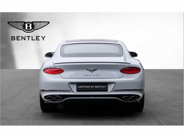 Bentley Continental GT V8 Gebrauchtfahrzeug Farbkombination: Außenfarbe: Ice (weiß) Hauptleder: Beluga (schwarz) Zweitleder: Beluga (schwarz) Furnier: Piano Black Sonderausstattung: Extended Range Lackierung in Ice Mulliner Driving Specification - 21" Leichtmetallfelge im 10-Speichen-Design, schwarz lackiert u. glanzgedreht Styling Specification verchromter Matrixgrill im unteren Stoßfänger Touring Specification beheizbare Frontscheibe Panoramaglasdach Komfortausstattung für die Vordersitze 3-Speichen Lederlenkrad, 1-farbig, beheizt Chromstreifen im Armaturentafelfurnier und in den Türfurnieren zusätzliche ''Diamant-Riffelung'' der Luftungseinlässe City Specification Kontrastziernähte hochflorige Fußmatten mit Ledereinfassung vorne Ambientebeleuchtung inkl. beleuchtete Einstiegsleiste LED Bodenbeleuchtung mit Bentley-Emblem vor Türen Welcome Lighting '''Bang & Olufsen'' Audiosystem mit 1.500 Watt Rotierendes Display, 3-Fach 'Bentley Dynamic Ride Standheizung (Bedienung über App) Induktive Telefonlademöglickeit Luft-lonisator Batterieladezustanderhaltungsgerät inkl. Sockel ...Änderungen, Zwischenverkauf und Irrtümer vorbehalten.